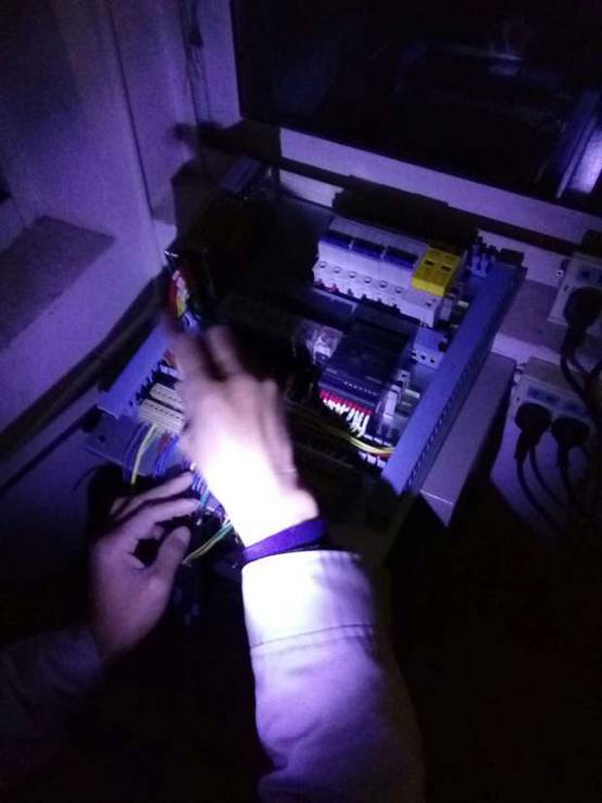 售后部技術(shù)工程師李經(jīng)理 夜里加班為某島的客戶現(xiàn)場(chǎng)維修電路,由于工廠停電,只能用手機(jī)燈 。(在這里為李經(jīng)理說(shuō)聲辛苦了。)