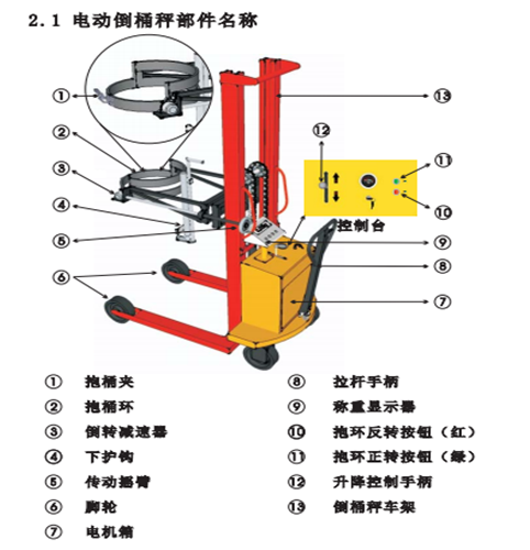 (7)在進(jìn)行旋轉(zhuǎn)到出油桶液體時嚴(yán)禁,進(jìn)行上下操作。作業(yè)結(jié)束后應(yīng)將貨物卸下,不予許重物長時間停放在倒桶秤上。